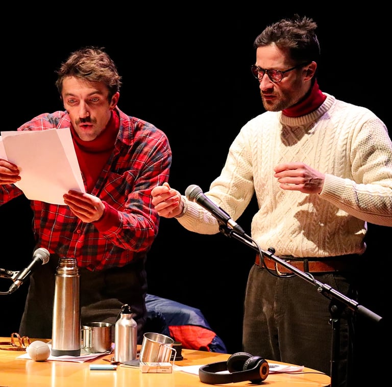 Texte François COUDER | Mise en scène Olivia ZERPHY & François COUDER | Interprétation Pierre FICHEUX & Yann BOYENVAL | Musique & création sonore Sébastien RENARD & Andrés HERNANDEZ | Administration Séverine NEDELEC | Diffusion Tina SARRAFI (Derviche Diffusion)